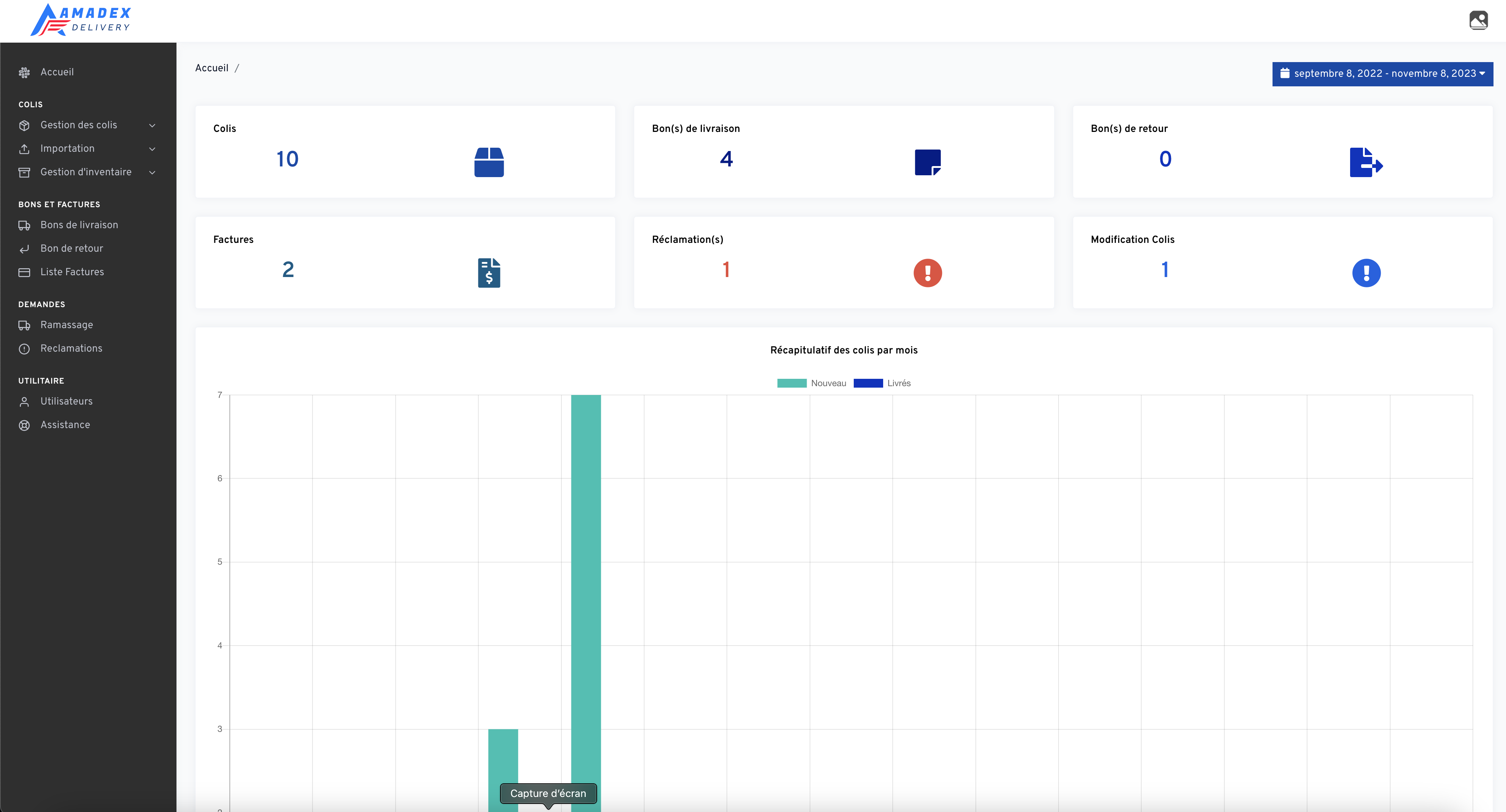Accédez au panneau AMADEX DELIVERY avec votre e-mail et votre code d'accès.